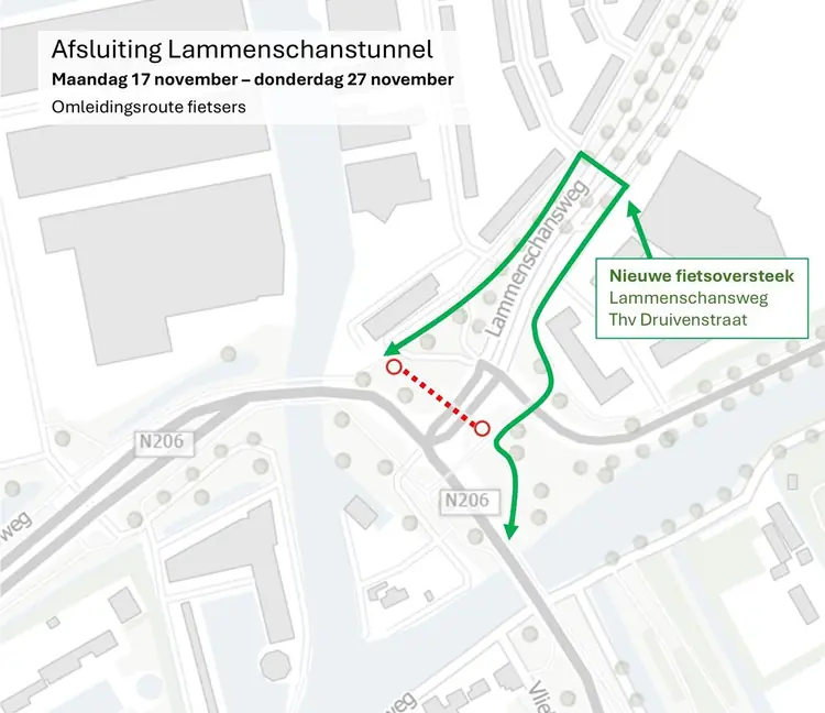 Fietstunnel Lammenschanstunnel afgesloten vanaf 17 november
