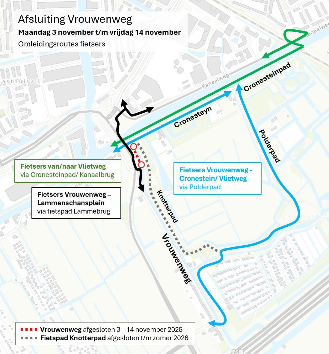 1. Maandag 3 t/m vrijdag 14 november afsluiting Vrouwenweg
