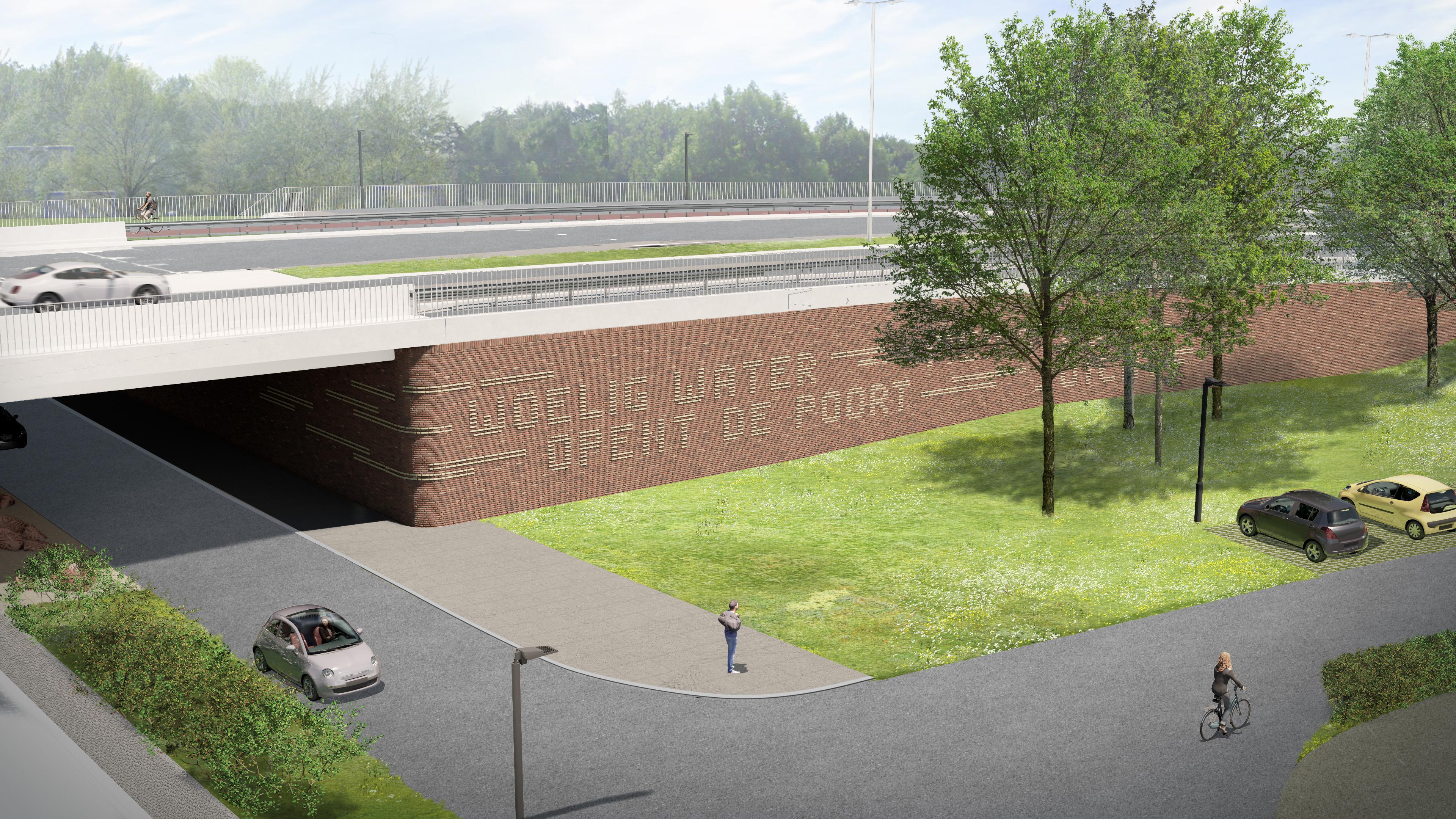Gemetselde wanden vangen straks het hoogteverschil op tussen de weg en de ruimte eromheen. Hiervoor worden oude bakstenen hergebruikt. Door wanden te gebruiken in plaats van taluds (schuine hellingen) blijft er meer ruimte over voor groen langs de fiets- en wandelpaden.