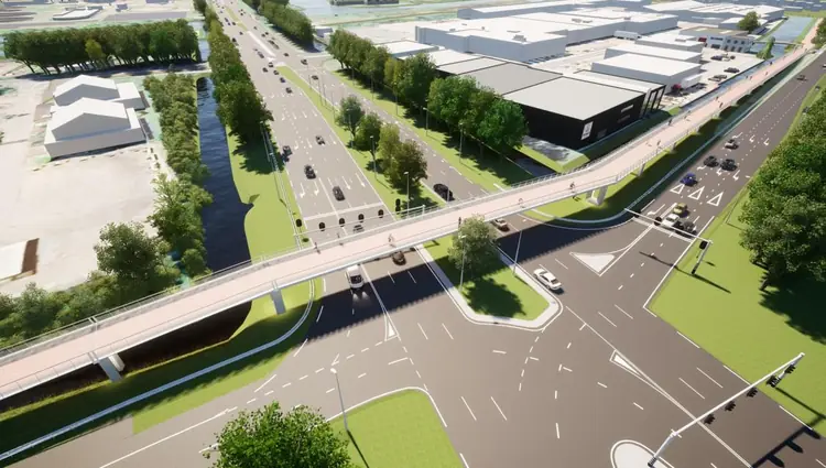 Plaatsing laatste twee brugdelen over de N516 (Thorbeckeweg)