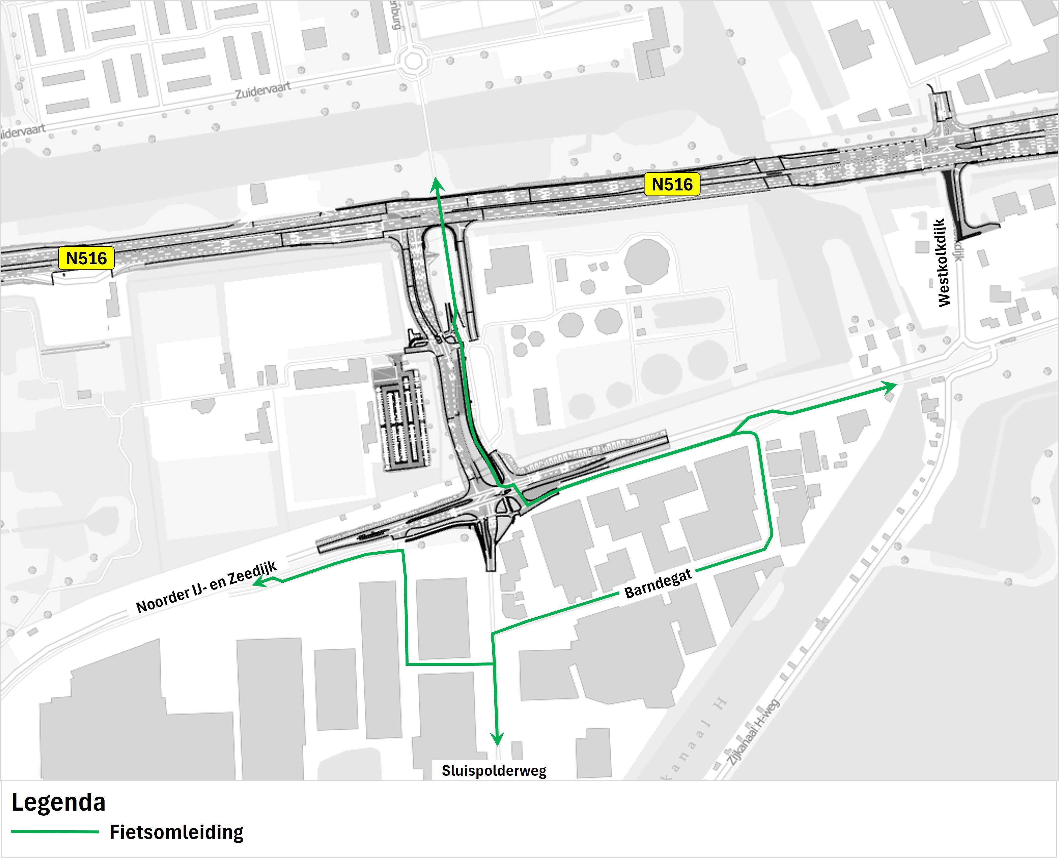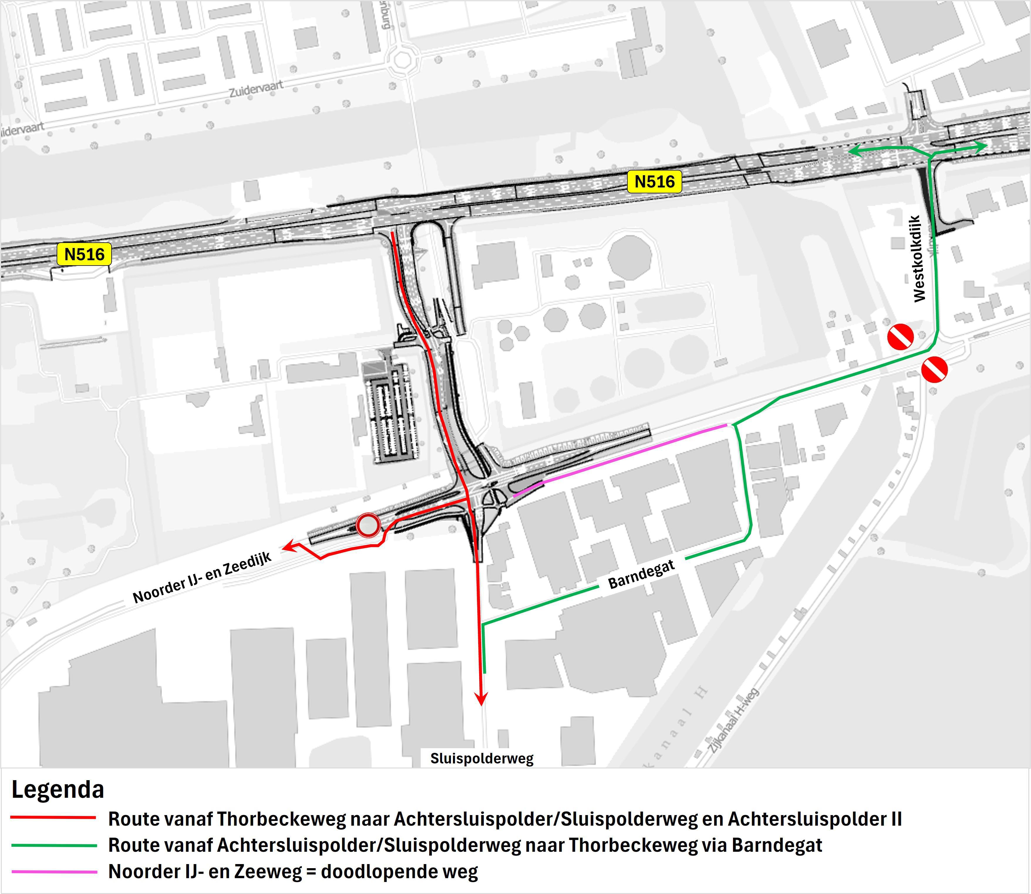 De bedrijventerreinen Achtersluispolder I, II en Zilverland en de bedrijven langs de Noorder IJ- en Zeedijk blijven bereikbaar voor vrachtverkeer, auto’s en fietsers. Fietsers rijden via de Barndegat.🚲