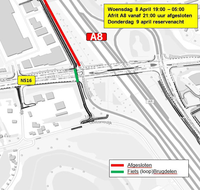 De afrit van de A8 is in deze nacht afgesloten.
