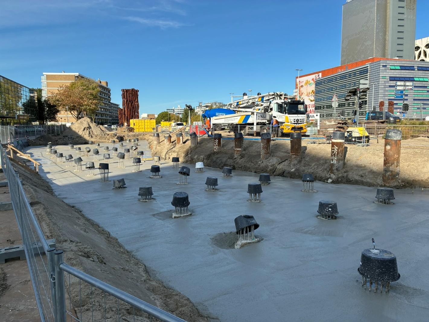 Deze week hebben we het eerste beton gestort voor de bouw van de fietsonderdoorgang Vondellaan, onderdeel van de reconstructie van de kruising Plesmanlaan-Vondellaan-Darwinweg. We hebben een betonnen werkvloer van zo'n 9 centimeter dikte aangebracht. Vanaf dit moment zijn we gestart met de onderbouw van de civiele constructie.