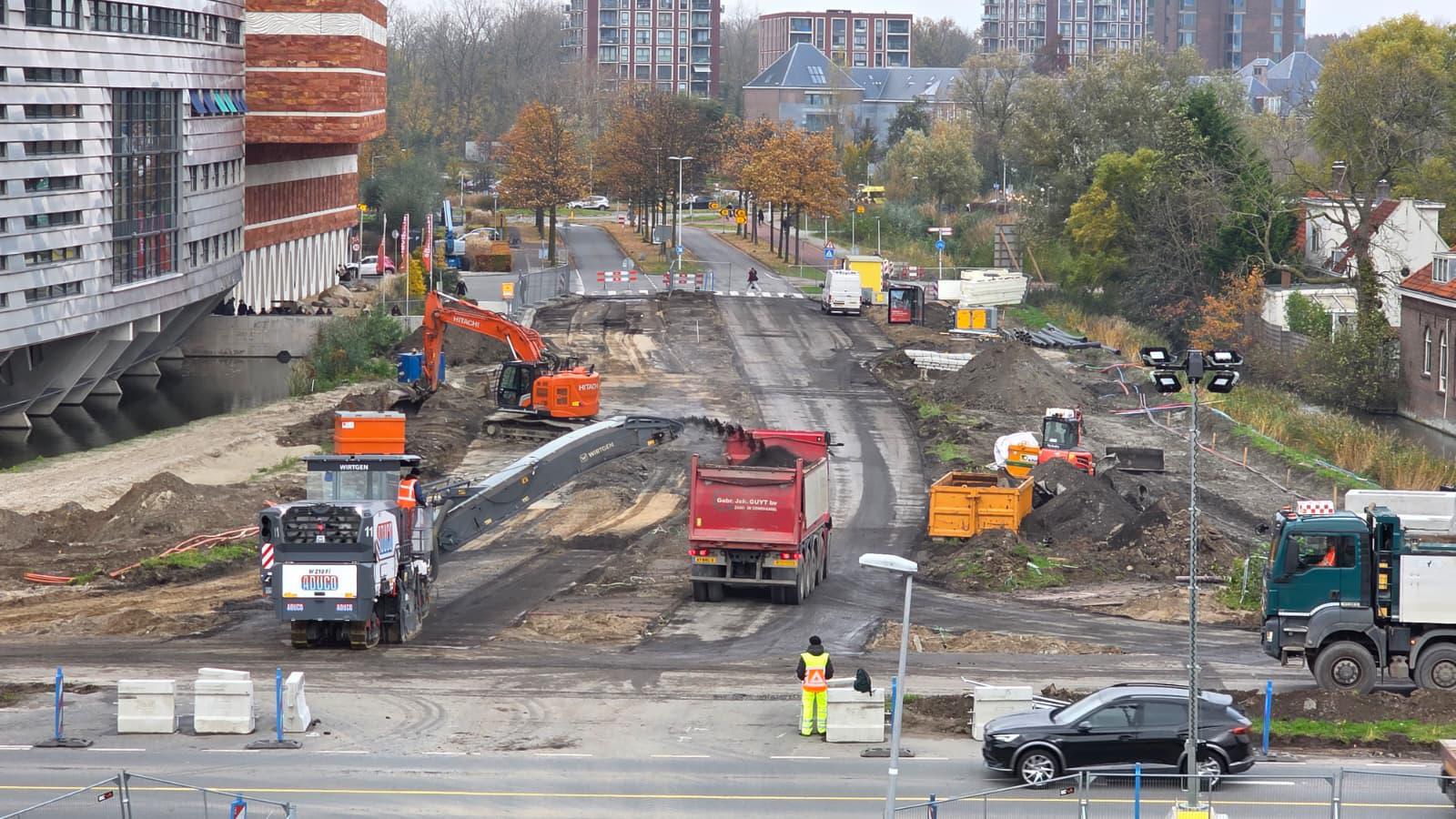 De werkzaamheden met betrekking tot de tijdelijke weg gaan met name donderdag en vrijdag verder. Donderdag wordt de deklaag van het asfalt gedraaid. Het verkeer op de Plesmanlaan ondervindt hier, op enkele kortstondige verkeerstops na, weinig hinder van. Op vrijdag 14 november gaat de Plesmanlaan nog een aantal uren dicht om de tijdelijke weg in te passen op de bestaande doorgaande verbinding van de Plesmanlaan. Deze werkzaamheden worden na 09.00 uur - buiten de spits - uitgevoerd. We moeten op vrijdag markering aanbrengen, betonbarriers zetten en de verkeerslichten op het systeem aanpassen. Daarna wordt de tijdelijke weg voor al het verkeer opengesteld. En dus gaat ook de Vondellaan weer open.