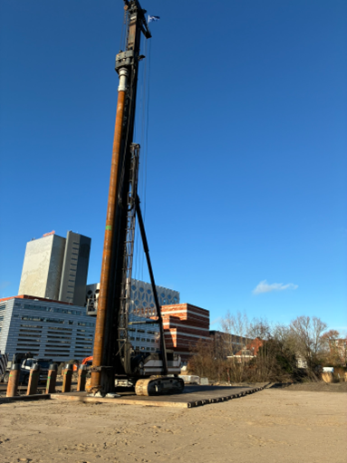 Ondanks de kou is gestart met het aanbrengen van boor-/buispalen als fundering voor de onderdoorgangen bij de Darwinweg en de Plesmanlaan. Dit zijn dezelfde type palen die eerder zijn toegepast bij de Vondellaan. Voor beide onderdoorgangen worden in totaal 54 boorpalen aangebracht, elk met een lengte van meer dan 20 meter. Dat betekent ruim één kilometer aan palen. Deze palen vormen de fundering voor het toekomstige wegdek waar het gemotoriseerde verkeer overheen rijdt. De boorpalen zijn hol van binnen. In een later stadium wordt hierin wapening geplaatst en worden de palen opgevuld met beton, waardoor een sterke en duurzame fundering ontstaat.