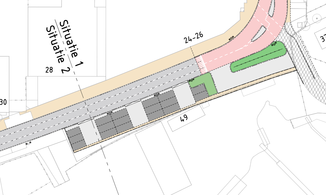 In de oude situatie kon door gebruik te maken van de ventweg evenwijdig aan de Sluispolderweg geparkeerd worden. In de nieuwe situatie is de ventweg verwijderd en kan er nu haaks geparkeerd worden (zie visual).